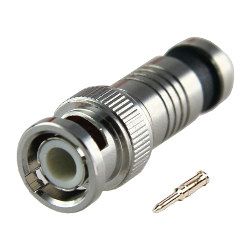 Conector BNC macho rápido de compressão. Requerido para instalações que contem com cabo coaxial RG59 e necessitem conectores BNC. Compatível com a ferramenta CON115-CRIM e com qualquer cabo RG59, permitindo uma união mais rápida e sólida em comparação com as ferramentas de crimpagem tradicionais.