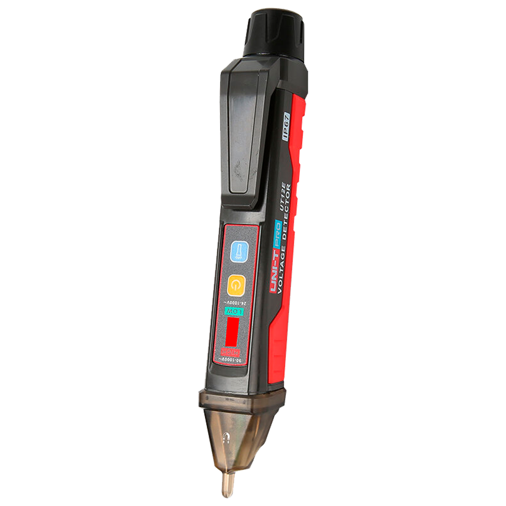 Detector de tensão AC sem contato – Modo de alta e baixa tensão até 1000 V – Aviso sonoro e LED visível – Apagado automático – Indicador de baixa carga – Sinalização do campo ótico magnético