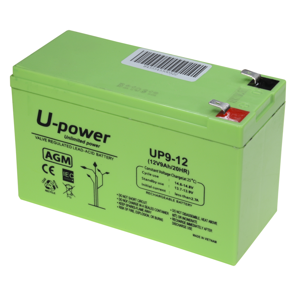 Upower – Bateria recarregável – Tecnología chumbo ácido AGM – Tensão 12 V – Capacidade 9.0 Ah – 95 x 151 x 65 mm / 2660 g – Para backup ou utilização directa