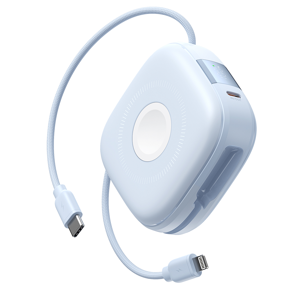 - Saídas 1x Porta USB-C, 1x Cabo USB-C, 1x Cable Lightning, 1x Sem fios