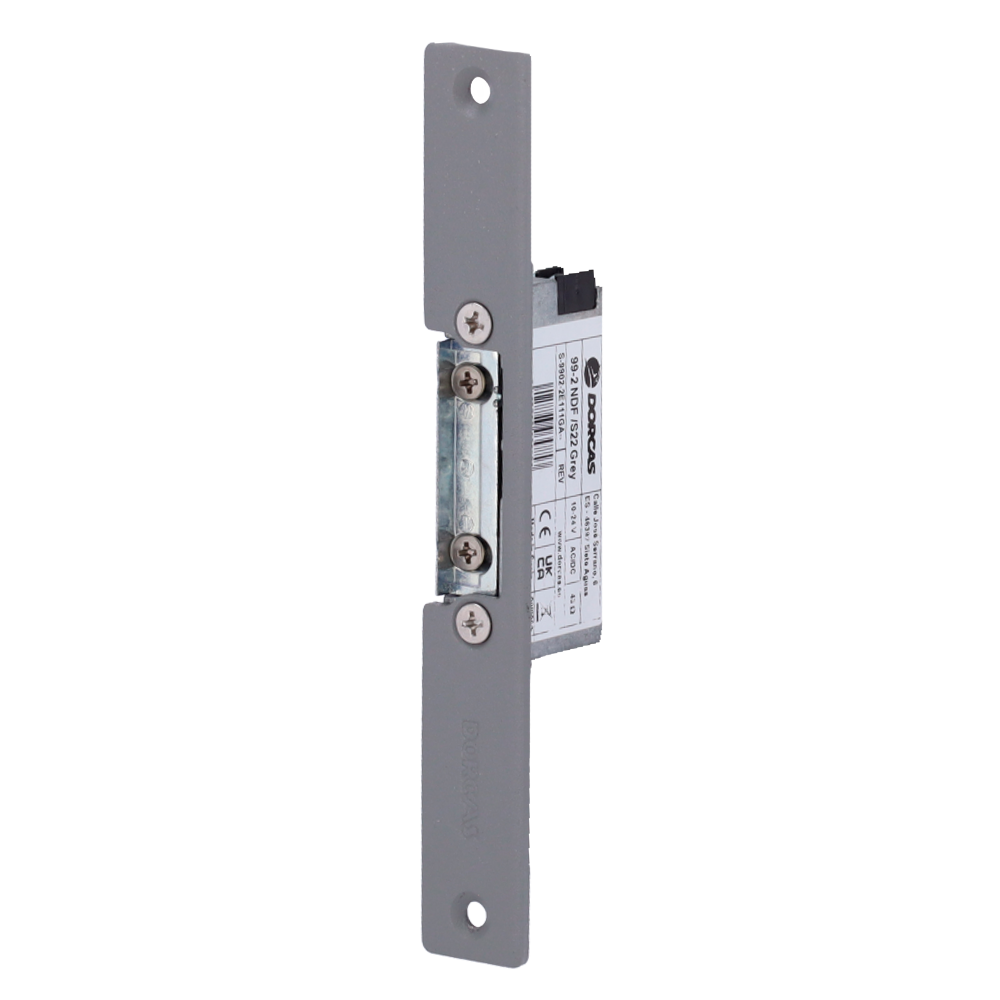 Sistema de abertura de portas eléctrico Dorcas – Para porta única : Parafuso radial ajustável – Modo abertura Fail Secure (NO) – Força de retenção 330 kg – Fonte de alimentação CA/CC 10-24V – Passagem livre
