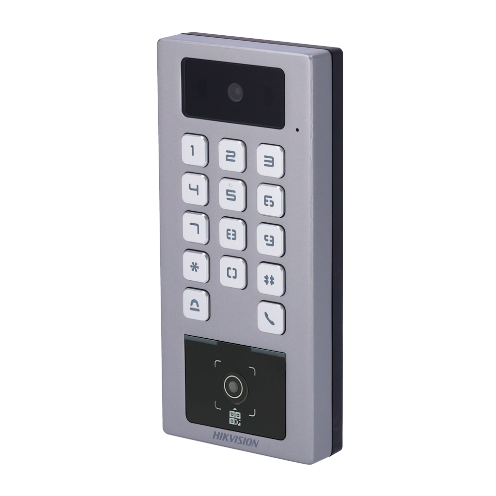 - Identificação por cartão MF DESFire, código QR, Bluetooth (apenas compatível com o HikCentral e o HikConnect Teams), palavra-passe e/ou combinações