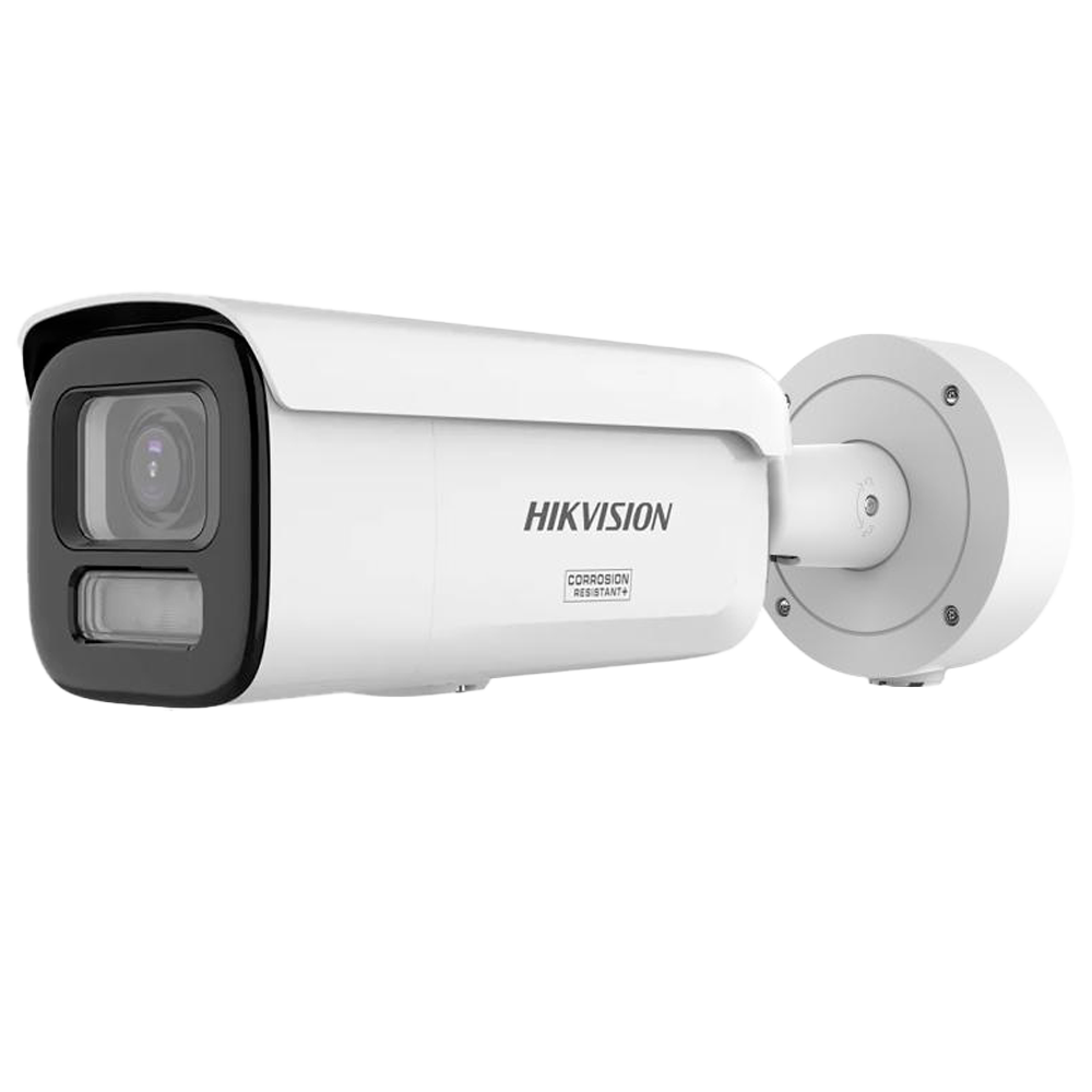 Hikvision câmara IP Bullet gama PRO ColorVu3.0 – Resolução 4 MPx | PoE IEEE802.3at – ColorVu3.0: imagem a cores HIKAI-ISP F1.2 1/1.8″ – Lente 2.8~12 mm | Sirene e flash dissuasor – AcuSense3.0 | Luz híbrida até 60m | Microfone – Alarmes | Áudio | IP67 | IK10 | NEMA 4X