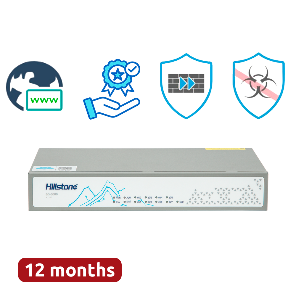 A Hillstone SG-6000-A1000-HWBDL1-IN12 é uma firewall de próxima geração (NGFW) compacta e potente, concebida para fornecer proteção avançada a redes de pequenas e médias empresas, combinando deteção proativa de ameaças, controlo granular de aplicações e operações de segurança automatizadas.