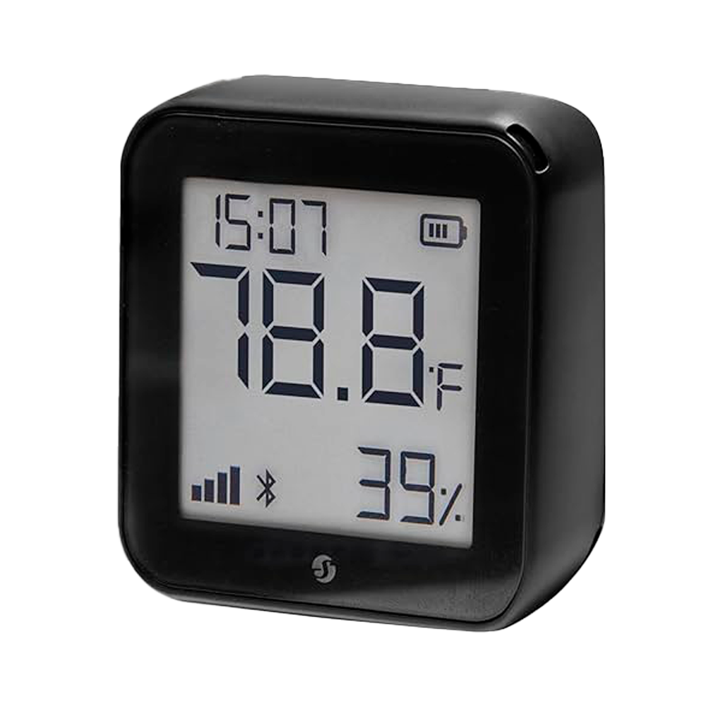 Shelly H&T Gen 3 Preto Mate – WiFi 2.4 GHz IEEE802.11 b/g/n / Bluetooth – Sensor H&T – Ecrã de baixo consumo de energia – Suporta 5V / 4 Pilhas AA – Compatível com Alexa e Google