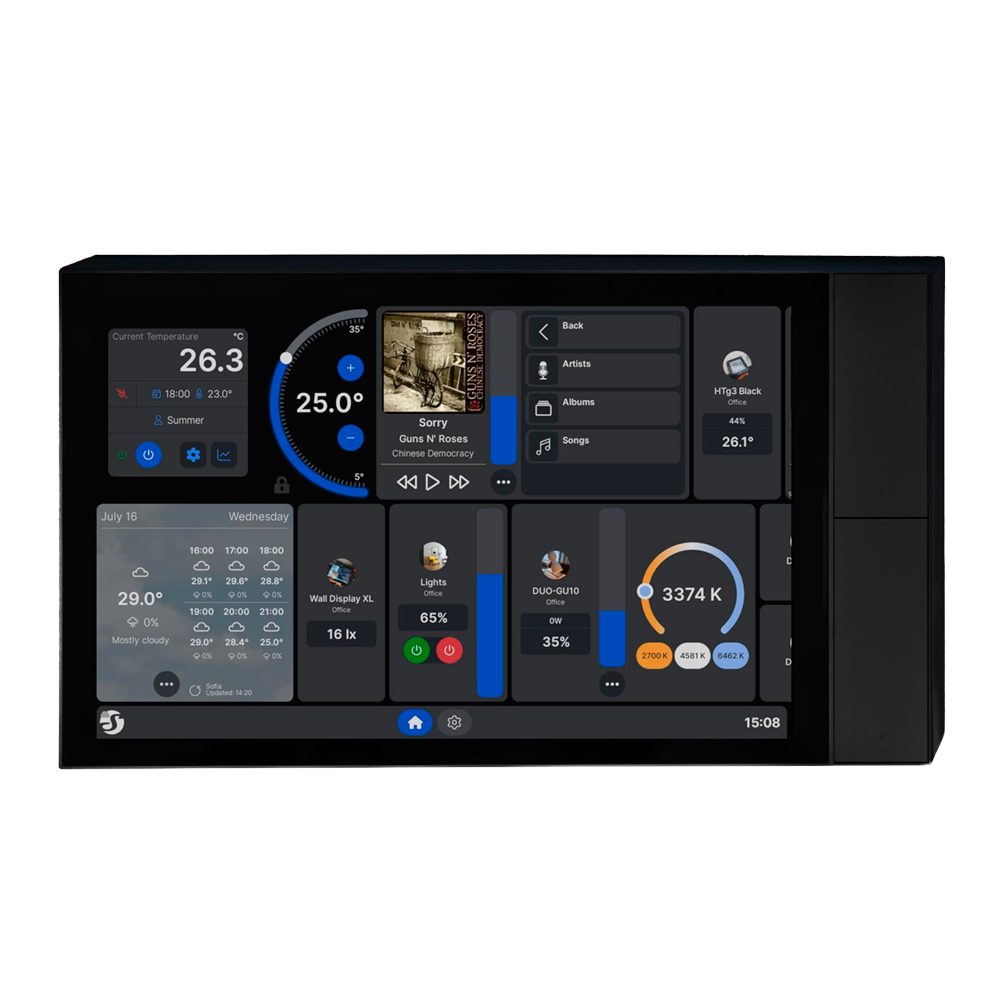 Shelly Wall Display XL Black – Wi-Fi 6 Dual Band / Bluetooth 5.4 – Sensor de iluminação – 4 botões físicos – Gerir o consumo – Compatível com Alexa e Google