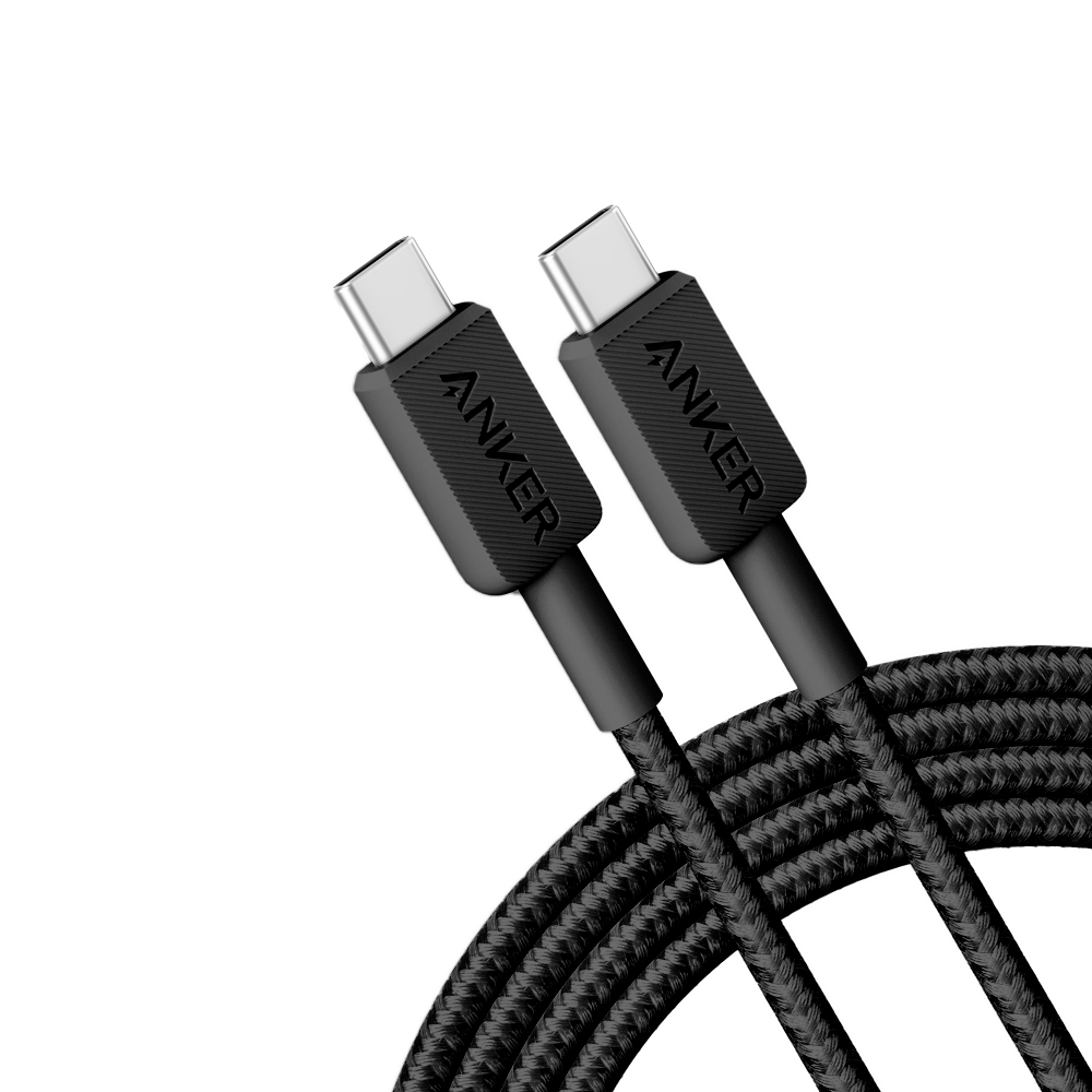 Anker – Cabo USB2.0 – USB-C para USB-C – Cabo trançado de nylon – Comprimento 1.8m – Carregamento rápido 60W : Cor preta