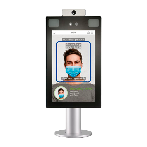 Este equipamento permite a identificação através de teclado para códigos numéricos e biometria com reconhecimento facial e da palma da mão.